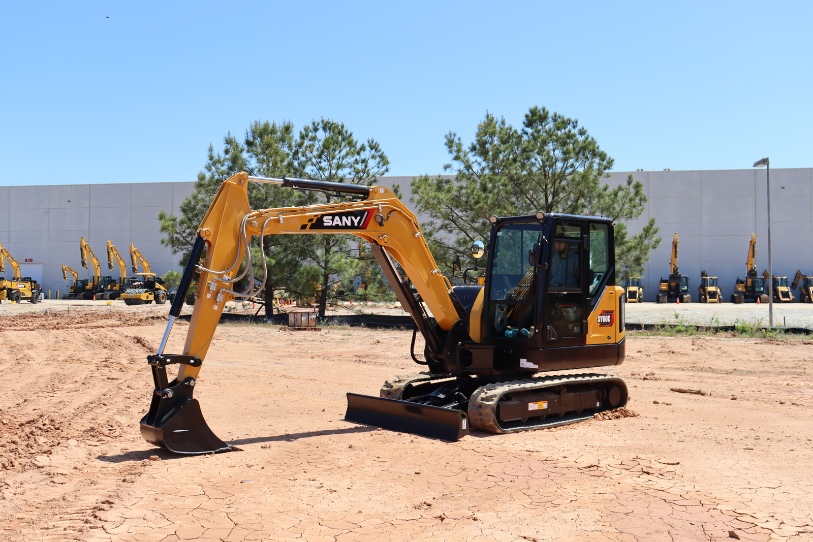 The SY50U zero tail swing excavator delivers high performance in a compact design, ideal for landscaping, light forestry, agriculture, small construction, and utility work. Its swing boom and maneuverable footprint allow efficient operation in tight spaces, while the backfill blade with float function improves grading and backfilling. Quick-coupler plumbing and adjustable auxiliary flow make attachment changes fast and versatile, supporting thumbs, brush cutters, and breakers. Powered by a reliable Yanmar engine with auto-idle, the SY50U offers fuel-efficient, dependable performance. Backed by a 5-year/5,000-hour standard warranty, it provides long-lasting value on every job site.