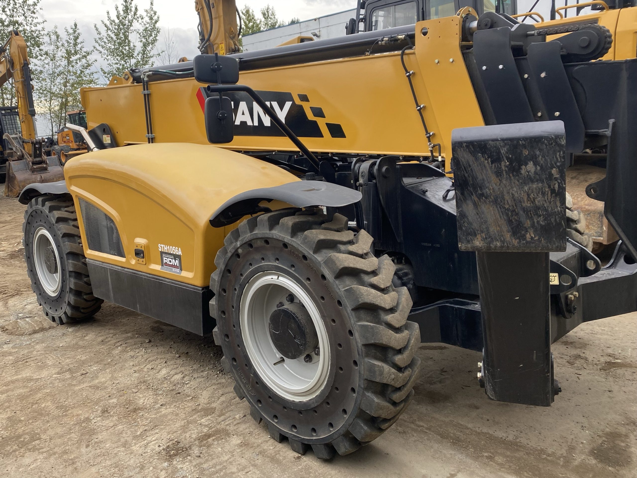 The STH1056A telehandler comes with 60″ Forks, Solid Cushion Tires, Cummins 130HP Engine.